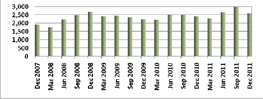 % change in number Sept qtr 2010-Dec qtr 2011 |