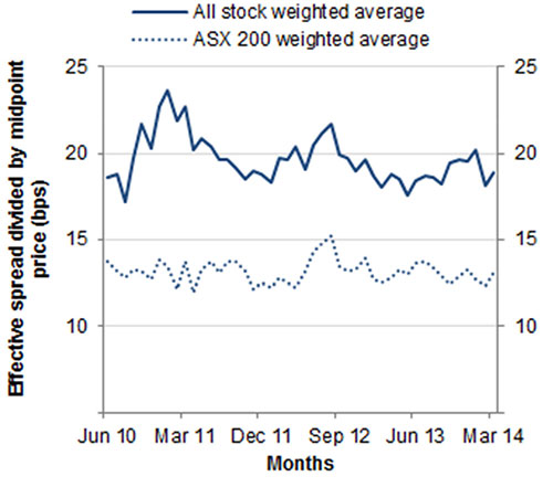 Effective bid–ask spread, bps - All stocks - S&P/ASX 200 stocks |