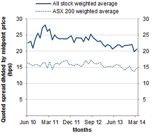 Quoted bid–ask spread, bps - All stocks - S&P/ASX 200 stocks |