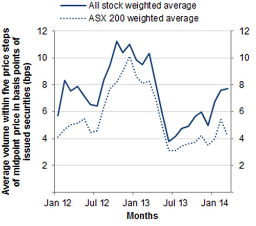 Depth at best 5 price steps – all stocks, bps - All stocks - S&P/ASX 200 stocks |
